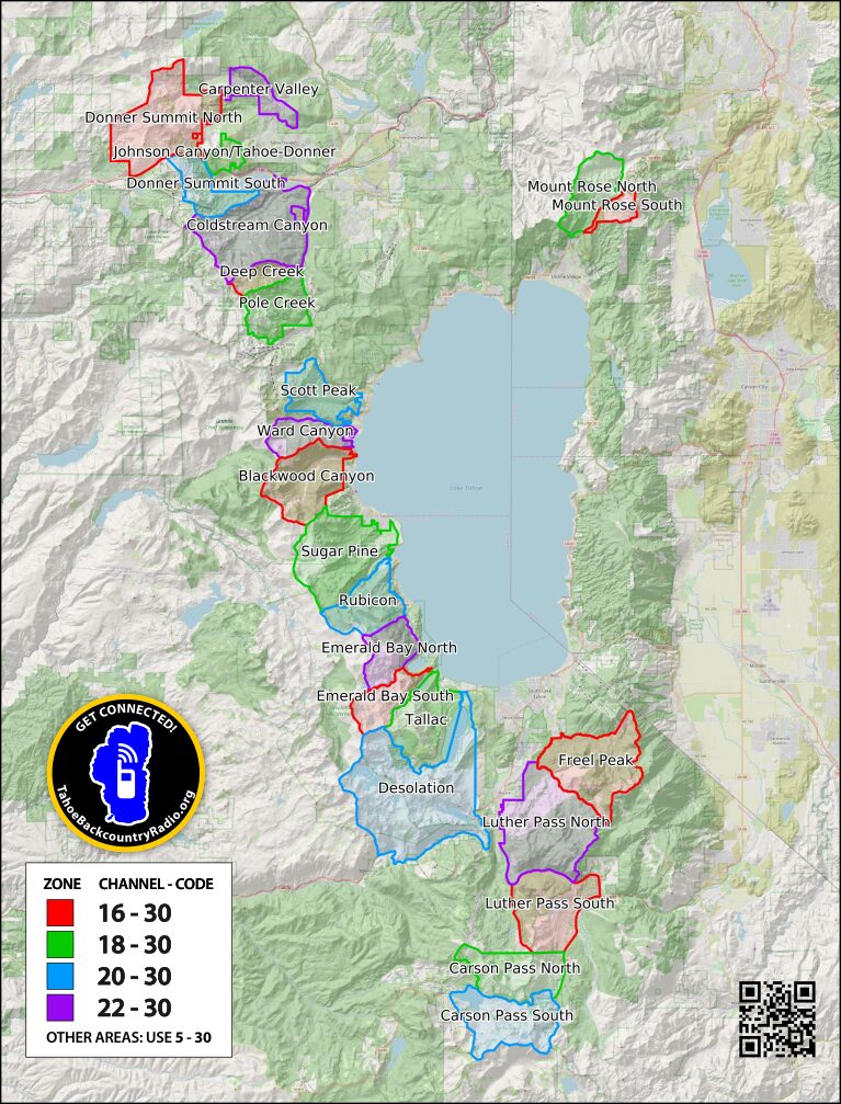 Tahoe Backcountry Ski Patrol (TBSP.org) have created the Tahoe Backcountry Radio Program. The program allows recreational users (with a focus on skiers) in the same connected terrain to access and use common FRS radio channel(s) to communicate about avalanche conditions, coordinate travel in complex terrain and render aid in event of emergency. We are partnering with the Sierra Avalanche Center and Tahoe Backcountry Alliance.