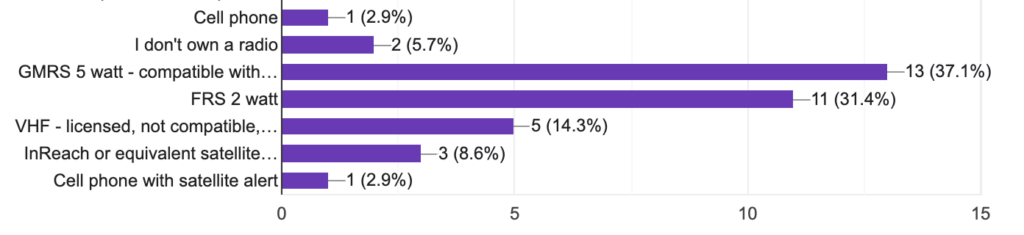 I have personally used a Rocky Talkie Mountain Radio. It is small and clips to your pack strap. It is two watts. For community radio, you can set up privacy code 30 once for channels 16, 18, 20 & 22. When you get to the trail, you only need to use the channel toggle on the top of the radio to select the correct community channel. You can use one of adjacent odd channels for your group channel with your own privacy code.