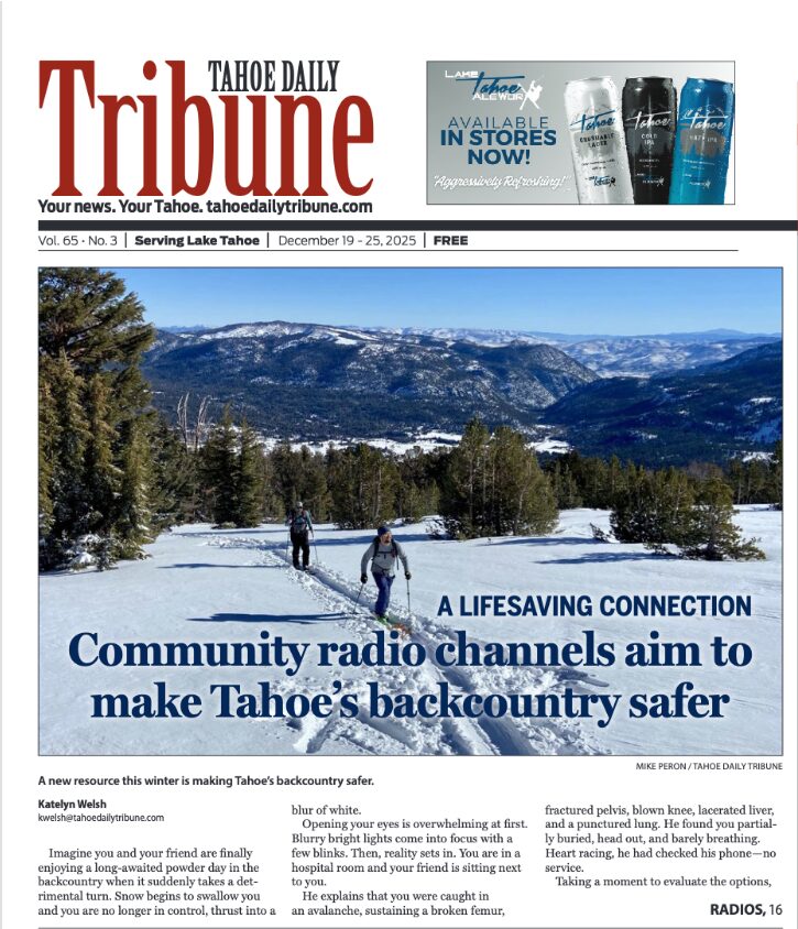 Tahoe Daily Tribune – A Lifesaving Connection – We made the front cover! Pick it up in Tahoe before New Years! 12/19/2025